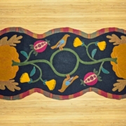 Ik ben zelf ook met een lekker herfst ontwerp bezig. Een wollen lopertje met applicatie. Een patroon van Jerome Thomas, genaamd Autumn Opulence. Ik zag het quiltje in een Amerikaans tijdschrift en werd gelijk verliefd op de kleuren en het stofje van de achtergrond. Ik kon het pakket bestellen bij de ontwerper met de oorspronkelijke stoffen en ik heb de achtergrond stof al meerdere malen tevoorschijn gehaald om even te aaien. Er komen nog meer elementen bij, oa nog wat vogeltjes bij de cirkel in het midden.