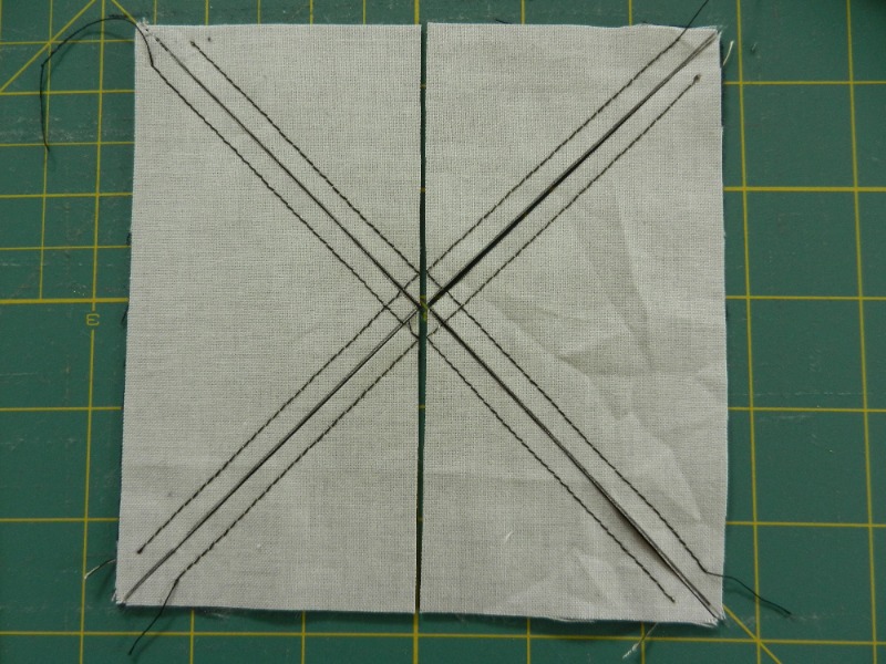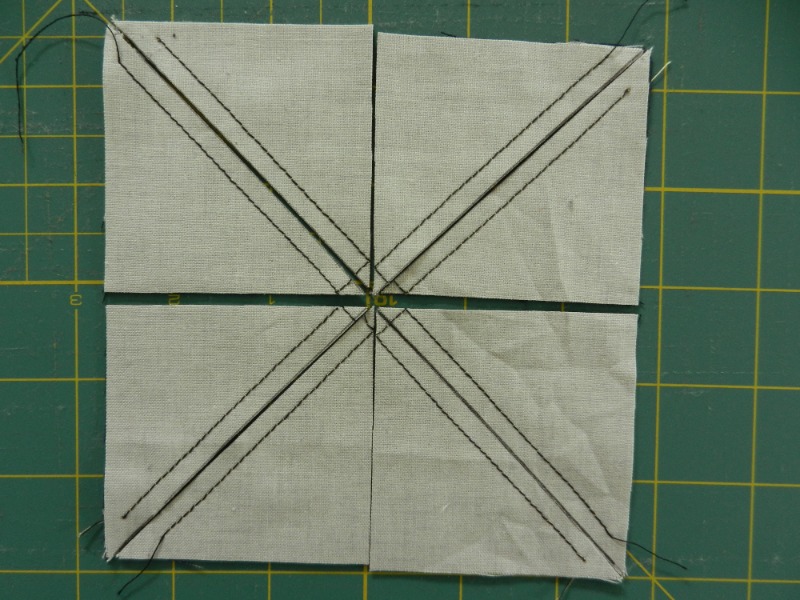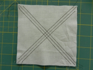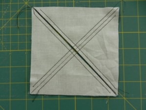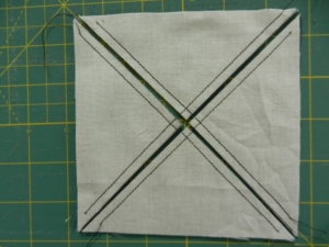 Teken twee diagonalen op elk wit vierkant. Naai aan elke zijde van de diagonalen een naadtoeslag.