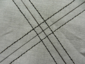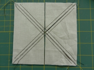 De naadtoeslag eerst aantekenen, indien nodig. Teken daarna een kruis door het midden van de witte vierkanten.