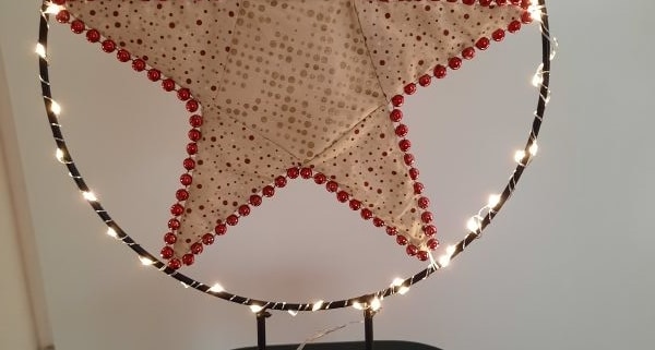 Ze maakte de ster al langer geleden voor de kerstkijktafel in de klas van haar dochter. Gebruik mooie kerststofjes, maak de ster, doe er wat lichtjes in en je hebt een stralende ster!