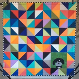De Afrikaanse stoffen waar ik mee werk lenen zich niet echt om met een overall-patroon doorgequild te worden, dit in tegenstelling tot gewone quiltstoffen. Vaak hebben de Afrikaanse prints een betekenis waar je niet zomaar doorheen kan naaien en de kleuren spreken vaak genoeg voor zichzelf.