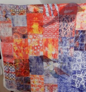 Workshop Gelli Plate bij Suze Termaat, ga ik ook afmaken, ligt klaar om te quilten.