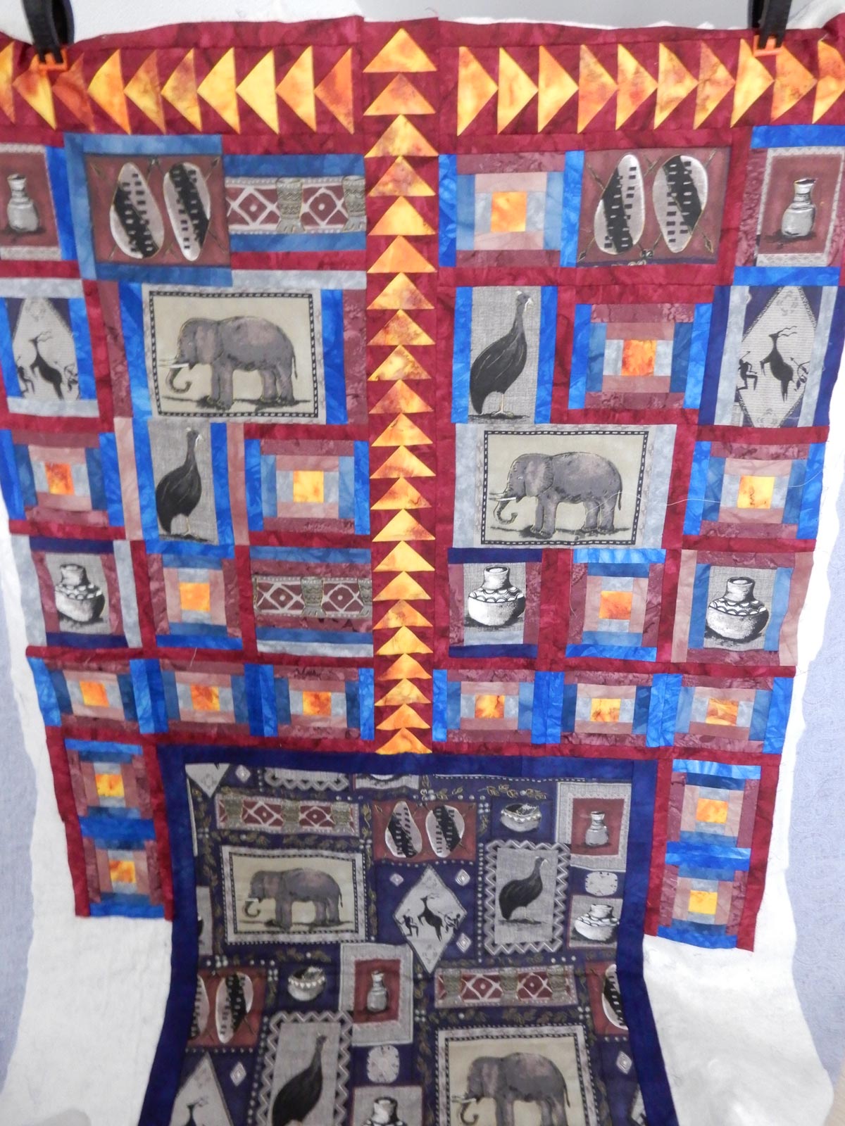 In Zuid Afrika heb ik een lap gekocht en die ben ik aan het verwerken in combinatie met batiks.