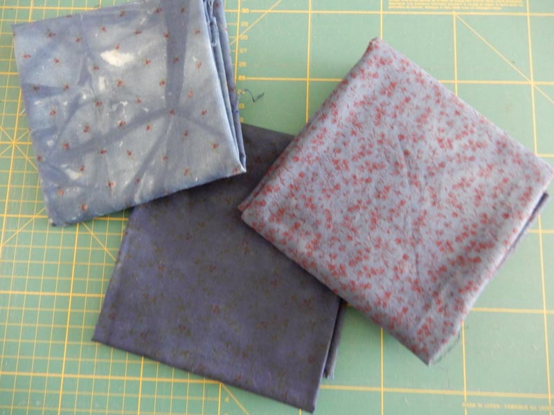 Door de jaren heen verandert je smaak, vooral in de keuze van stoffen. Dus komen er ook lapjes tevoorschijn die ik niet meer zo leuk vind. Tijdens het quiltweekend van het Quiltersgilde afgelopen maart gaf Jeanette Broer een geweldige tip. De ‘niet zo leuke lapjes’ in een verfbad van donkerblauwe verf doen. Dat heb ik geprobeerd en warempel dan worden ze toch weer mooi om te zien en deze lapjes hebben allemaal immers dezelfde kleur.