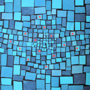 Zoals de meeste Artquilters ben ik als traditionele quilter begonnen en kom ik eigenlijk uit de stal van Marin in Westendorp. Mijn omkeerpunt was een twisted log cabin cursus. Daarbij ontdekte ik hoe leuk het is je eigen ontwerp te maken. En omdat ik toen de juiste kleuren blauw niet kon vinden ben ik zelf mijn lapjes gaan verven. Toen was het hek van de dam…