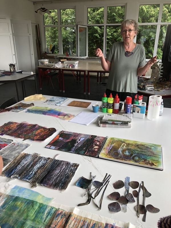 Na een introductie over de belangrijkste aspecten van het ontwerpen, kwamen gedurende de volgende dagen veel verschillende technieken voorbij. Eke had heel wat demonstraties voorbereid en daarna ging iedereen aan de gang met het maken van een moodboard. Vandaar uit hebben we de rest van de week verder gewerkt
