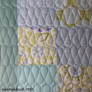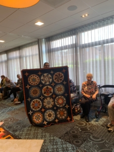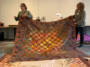 Uit de tas van 1 van de deelnemers (Zwanie Meijer) kwam nog een mooie quilt die door Zwanie was gepatched en door Elly was gequilt op de longarm: