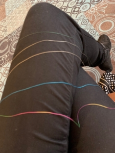 Na de bekende heerlijke Schakel-lunch met kroket kregen we in de middag een trunkshow van Elly Prins. Elly vertelde honderduit over hoe het allemaal zo gekomen was en waar ze tegen aan gelopen was bij alle keuzes die ze gemaakt had.