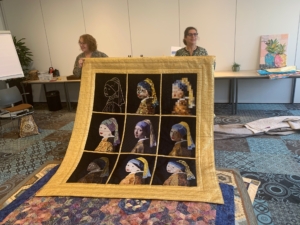 Met een hoofd vol nieuwe kennis en inspiratie sloten we de dag af, wat zijn die Meet&Greet Dagen toch een prachtig initiatief van het Quiltersgilde. Of je nou art, modern of traditioneel quilt, er is voor iedereen iets te delen en te beleven. Dank aan de vrijwilligers die ook deze dag weer hebben mogelijk gemaakt: Rose-Anne de Haan en Yvonne van der Sluijs!
