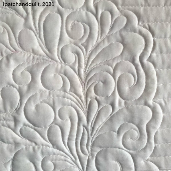 Uit de tas van 1 van de deelnemers (Zwanie Meijer) kwam nog een mooie quilt die door Zwanie was gepatched en door Elly was gequilt op de longarm: