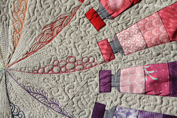 Superleuk, wist je dat ze de eerste longarmquilter in Nederland was (en de tweede in Europa) en dan hebben we het over 1 januari 2000. Niks geautomatiseerde patronen quilten, alles ging op een houtjetouwtje manier. Maar ze durfde het aan en kijk waar ze nu staat. Ze bracht een berg quilts mee, werk gemaakt aan de hand van thema’s, familie herinneringsquilts, wedstrijdquilts, en allemaal even fraai gequilt natuurlijk…