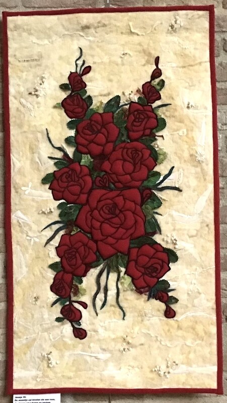 Dit jaar waren er veel Nederlandse inzendingen. De tentoonstelling “Connected in Red” van het quiltersgilde, de “ Imagine a bird “ van het EQA met heel veel Nederlandse quilts en bij de “Round Bobbin” tentoonstelling van Patchquilt/EQA. En de tentoonstelling van Helma Huisman-Hildebrand.