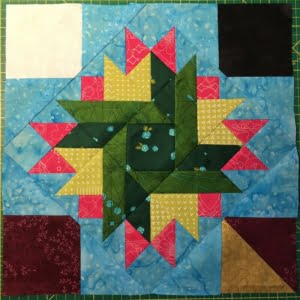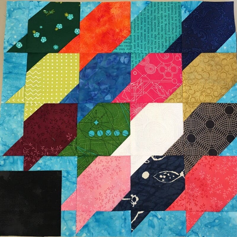 De belofte voor de blokken was verschillende technieken maar duidelijk is wel dat de ontwerpster (in ieder geval dit jaar) erg van traditional piecing en HST’s (half square triangles) houdt….