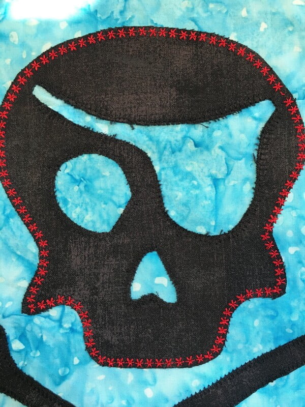 April – ‘Sudden death’ – doodshoofd en koraal – twee blokken applliqué
