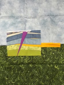 Maart – ‘Rapid Descent’ – vliegtuigje – traditional piecing inclusief HRT’s (half rectangle triangles)