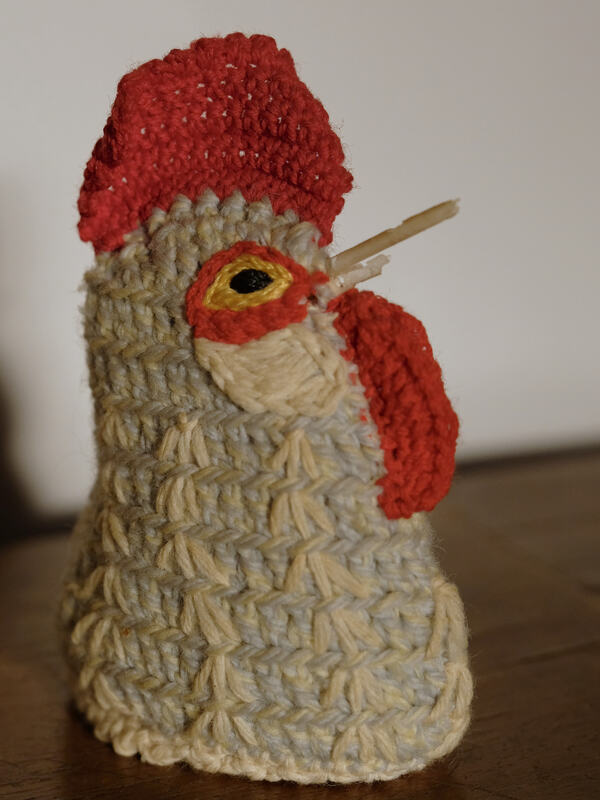 Om de haverklap riepen we vol verbazing “hé weet je nog, die spencer droeg ik op de middelbare school … kijk nou, die trui heb jij gebreid… hier is nog het patroon van dat geborduurde kussen… en kijk deze gehaakte eierwarmers. De kippen zijn er niet meer, maar de haan nog wel”