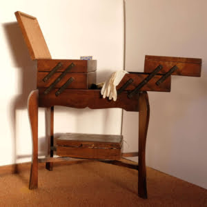 Ze had sinds haar trouwen een naaikistje op poten met scharnierende doosjes. Als kind vond ik dat een magisch meubelstuk, maar we mochten er niet mee spelen. Ze bewaarde er haar knopen in.