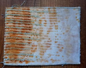 Wat ik wel wil laten zien, is het resultaat van een compleet nieuwe verslaving. Vorig jaar begonnen, toen het nog weleens sneeuwde. (Ja, echt waar!) Nu breekt het door met roestige objecten en geknoei in emmertjes met Procion en oude lapjes.