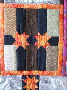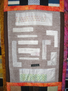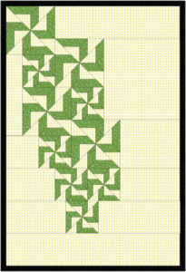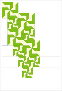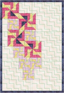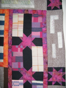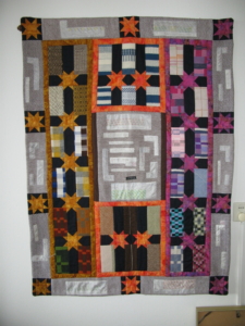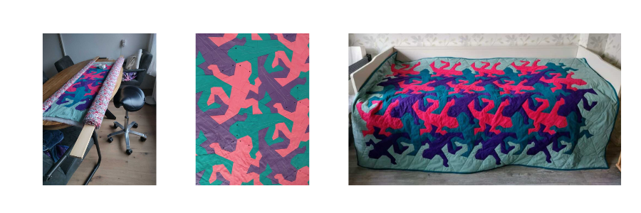 Of laat je inspireren door een mooie foto in een magazine. Soms staan op zo’n foto details met een onbeduidende kleur. Bijvoorbeeld op een foto van een rijtje schepen in een haven. De mast van die schepen is vaak bruin. Je ziet de mast eigenlijk niet eens echt. Maar hij is er wel, en beïnvloedt de foto niet alleen door de vorm en herhaling van die vorm, maar ook door het kleine beetje bruin. Wanneer je een foto hebt met zo’n schijnbaar onbeduidende kleur erin, kun je van die kleur toch een klein beetje toevoegen aan je quilt. Al is het maar een paar kleine scrapjes. Het vraagt niet echt de aandacht, maar is er wel en kan door de vorm en herhaling toch wat toevoegen aan je quilt.