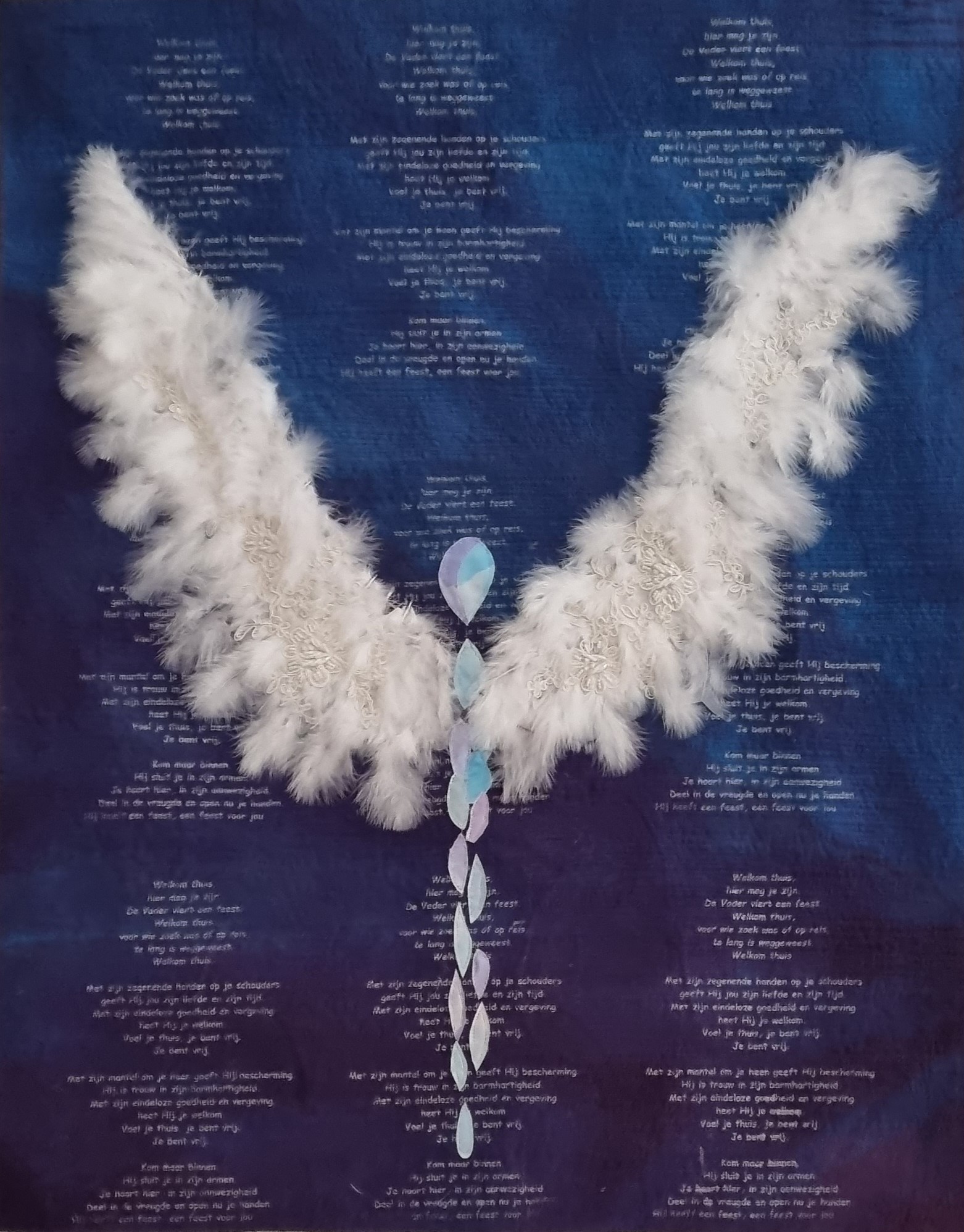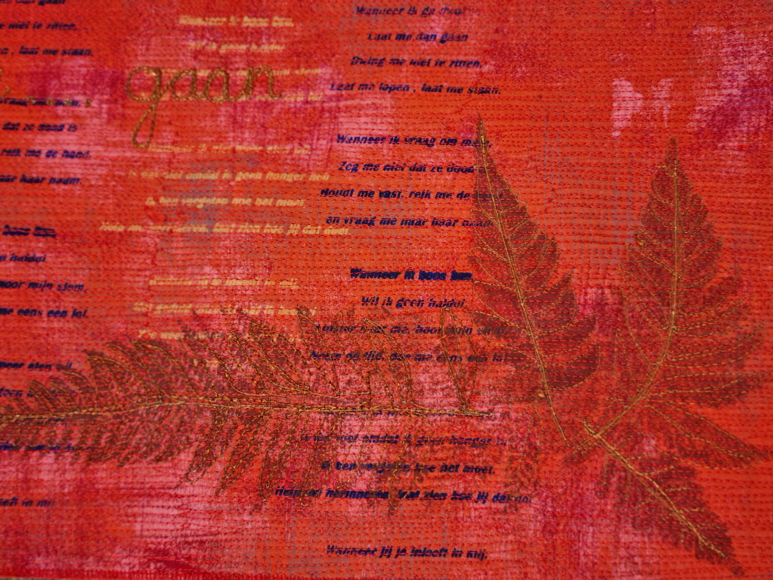 Leintje van Belzen zag op een kunstroute een glas-in-lood raamhanger van een vlinder die uit haar cocon kruipt. Helaas bleek deze raamhanger al te zijn verkocht. Leintje houdt ervan met verschillende technieken te werken en ging op zoek naar een voorbeeld om de raamhanger na te maken van stof. Dit is het resultaat geworden van haar quilt die zij “ Papilon” heeft genoemd. Voor Leintje heeft deze quilt een mooie en warme herinnering aan haar vader. Haar vader bracht haar spelenderwijs de liefde voor de natuur bij. In 2011 was zij met deze quilt bezig toen haar vader overleed.