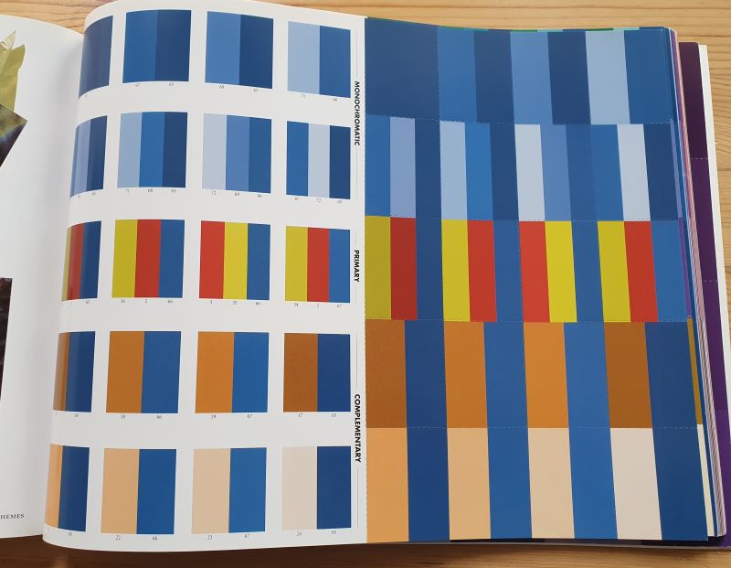 De volgorde en het effect van de zeven kleuren bepalen m.b.v. een spiegeltje. Ik naai ze aaneen tot één blok.