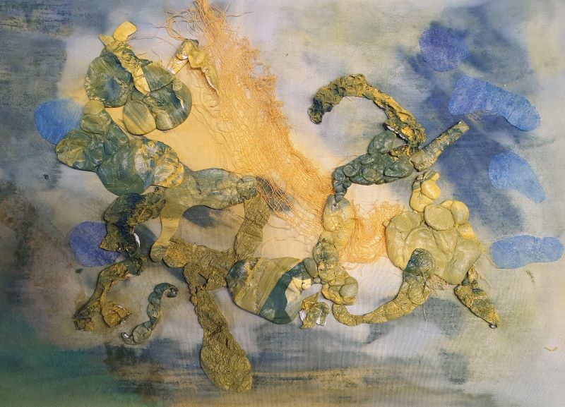 Ik bereik wat ik wil. Met mijn verbeeldingskracht zie ik koele groen-paarse bergen en hete oranjerode vulkanen ontstaan. Bergen om te verzetten, te beklimmen en te overwinnen. Ik zie ‘The Hills we Climb’ in mijn quilt. “Zo weef ik haar eigen symboliek in mijn quilt”.
