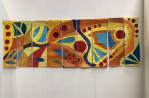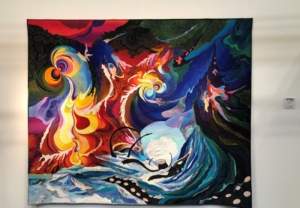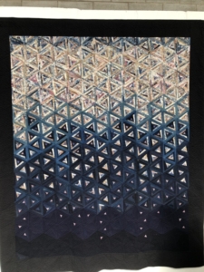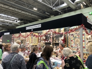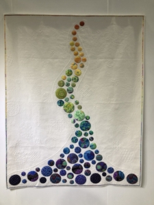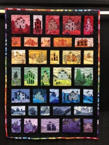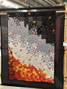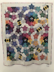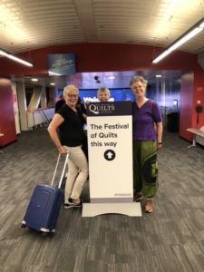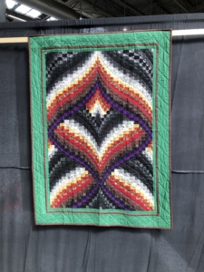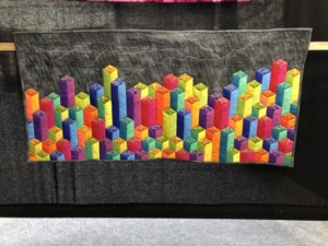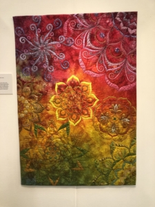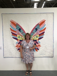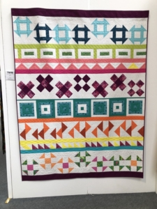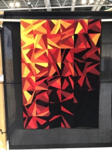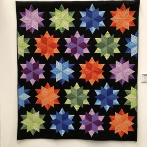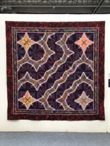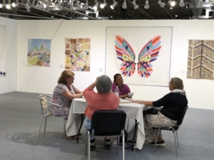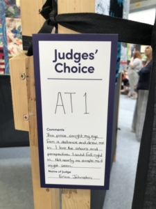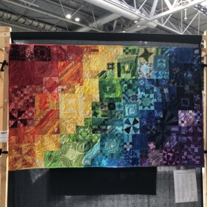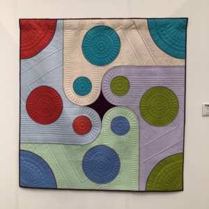 En wat een luxe. Alle quilts, ook de collectie moderne quilts die verzonden was vanuit Nederland, werden door de organisatie opgehangen. Het zag er geweldig uit met die gekleurde achterwanden. In het blogbericht van Monica lees je haar verslag van de beurs.