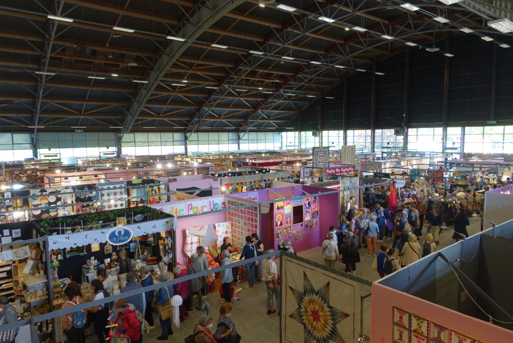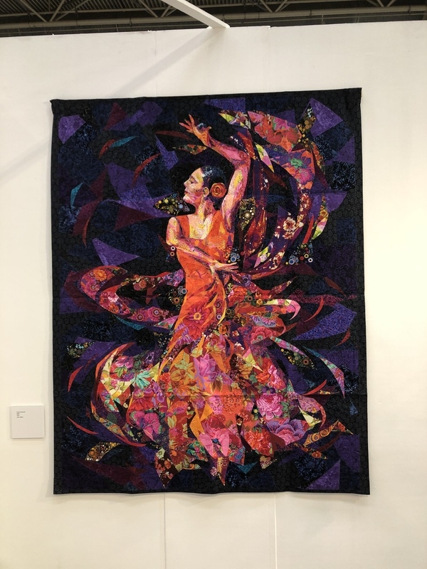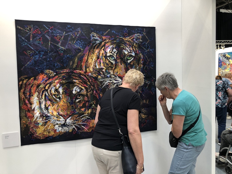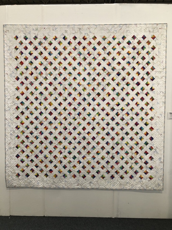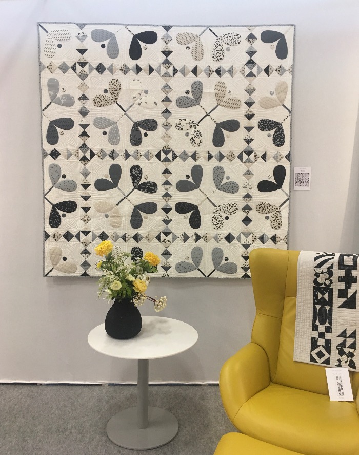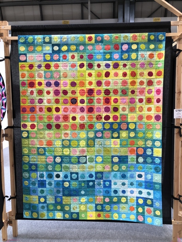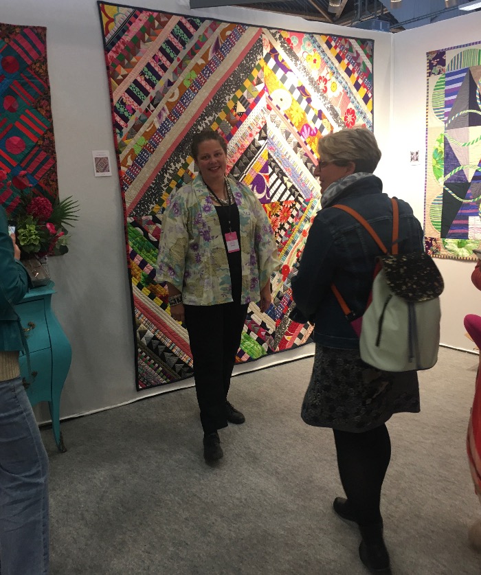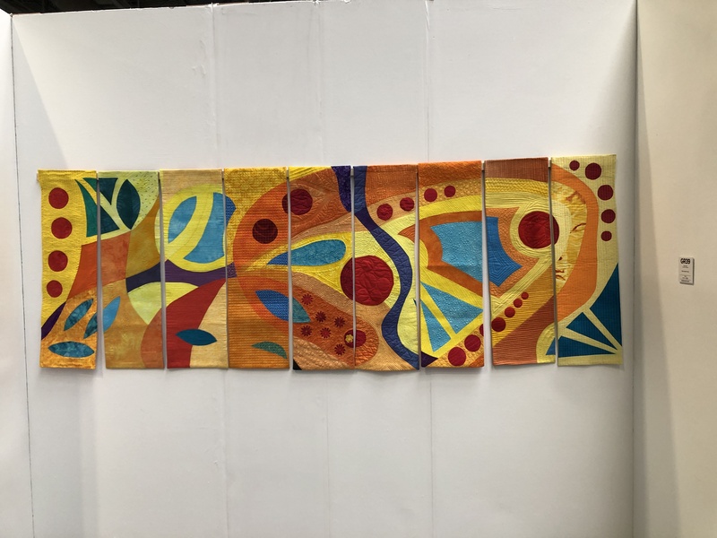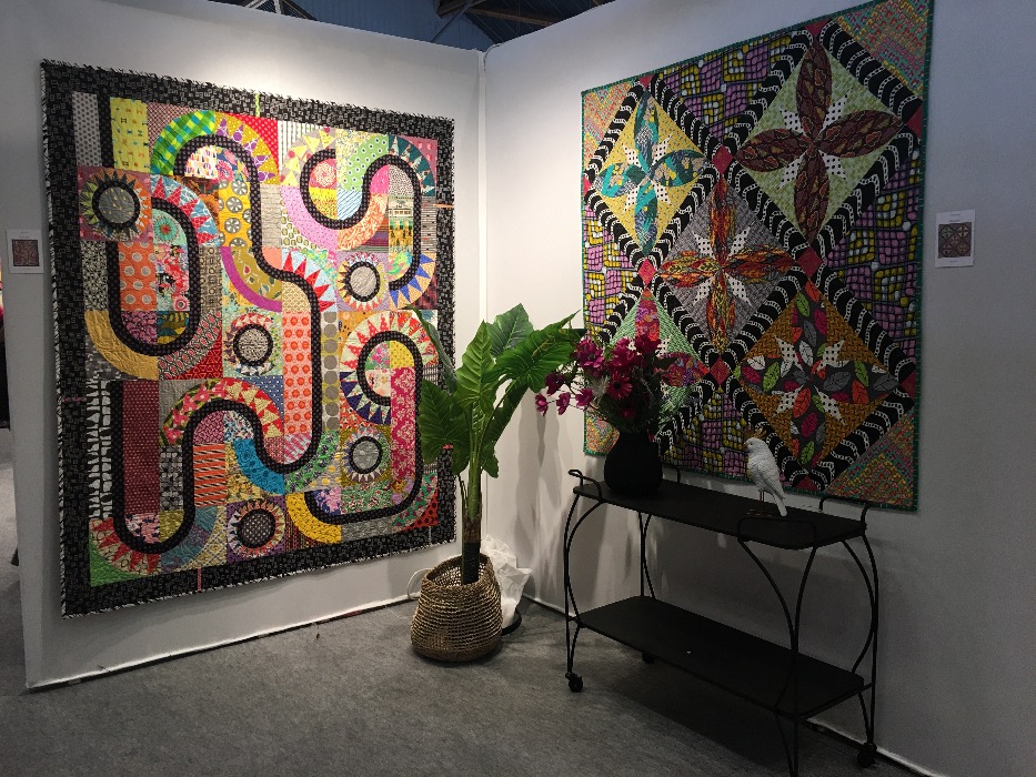 En wat een luxe. Alle quilts, ook de collectie moderne quilts die verzonden was vanuit Nederland, werden door de organisatie opgehangen. Het zag er geweldig uit met die gekleurde achterwanden. In het blogbericht van Monica lees je haar verslag van de beurs.