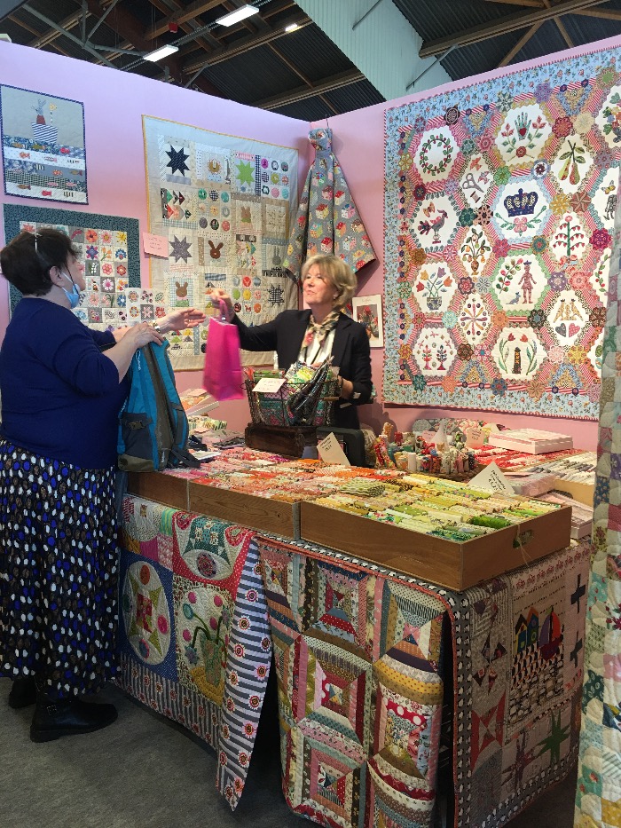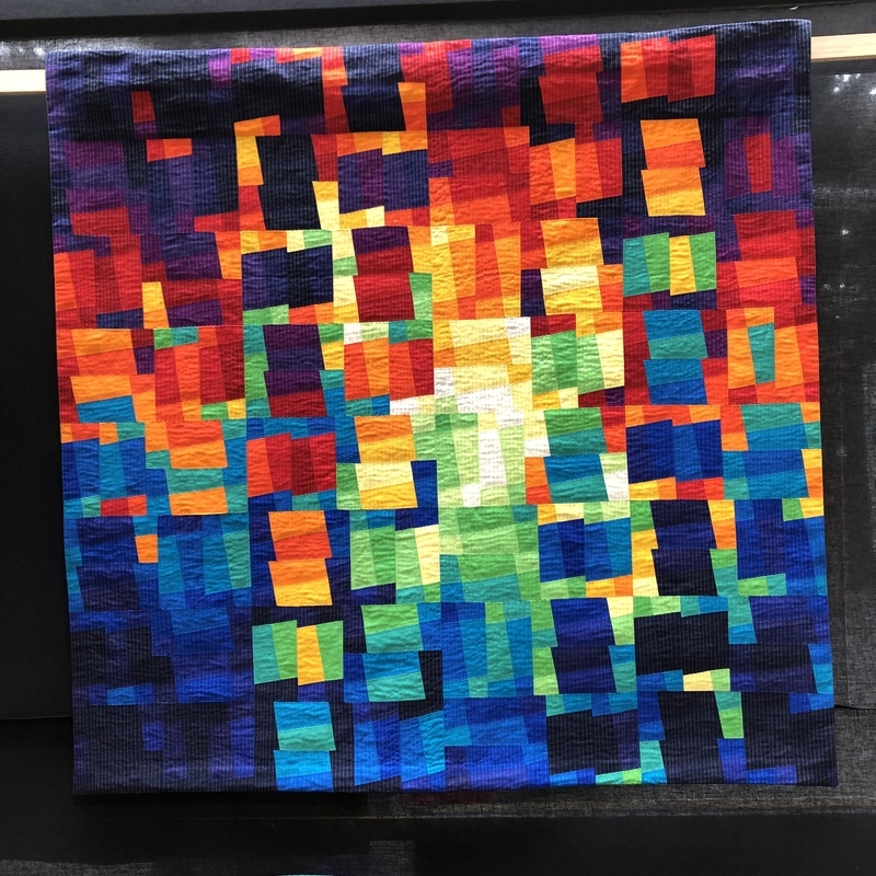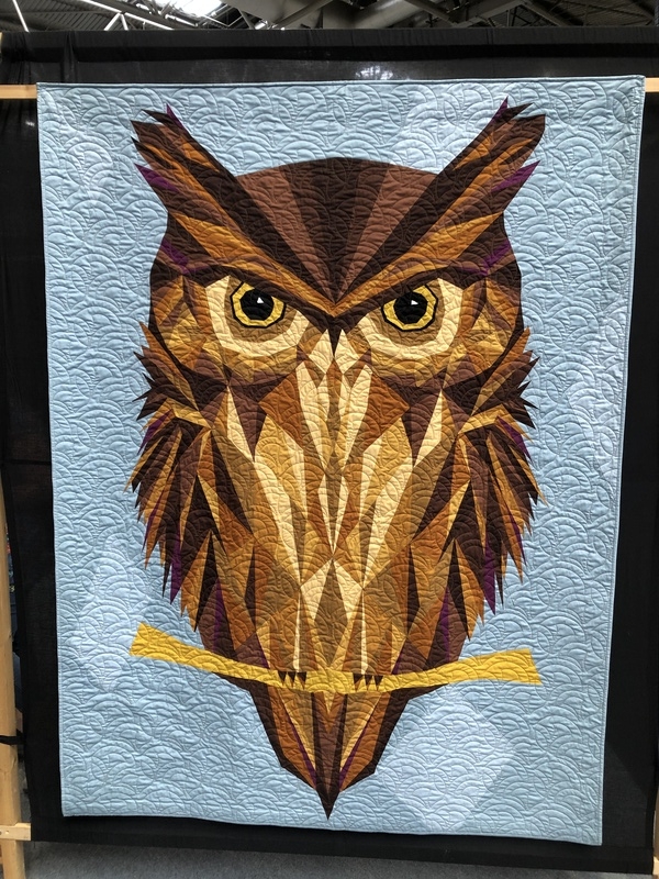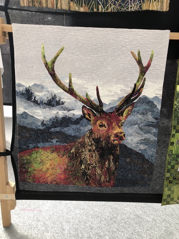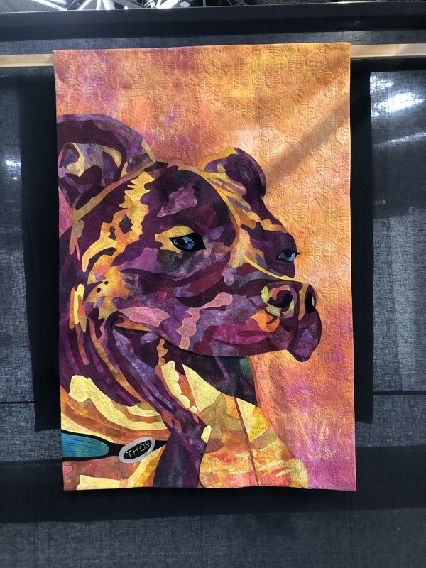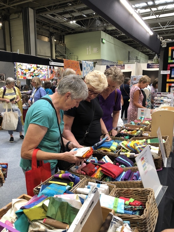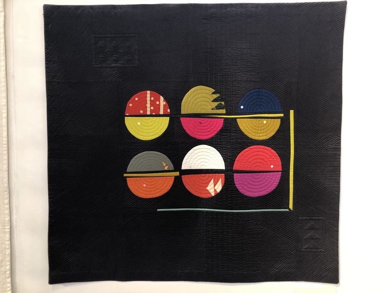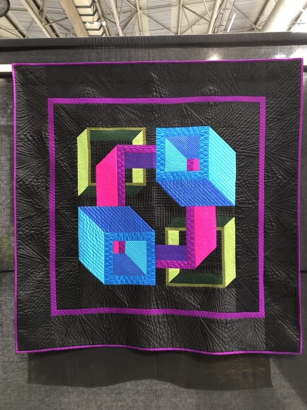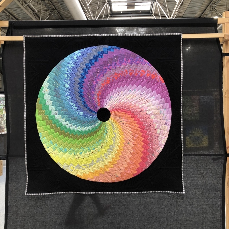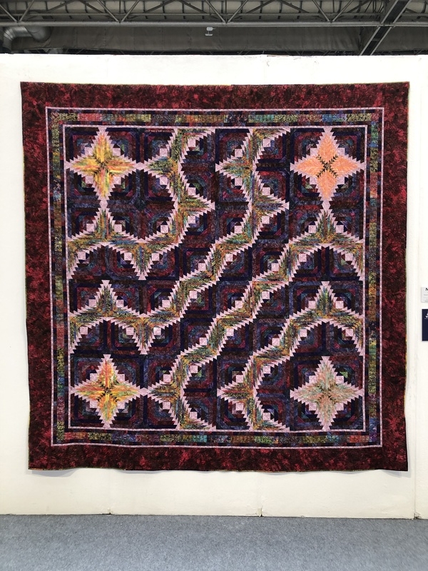 En wat een luxe. Alle quilts, ook de collectie moderne quilts die verzonden was vanuit Nederland, werden door de organisatie opgehangen. Het zag er geweldig uit met die gekleurde achterwanden. In het blogbericht van Monica lees je haar verslag van de beurs.