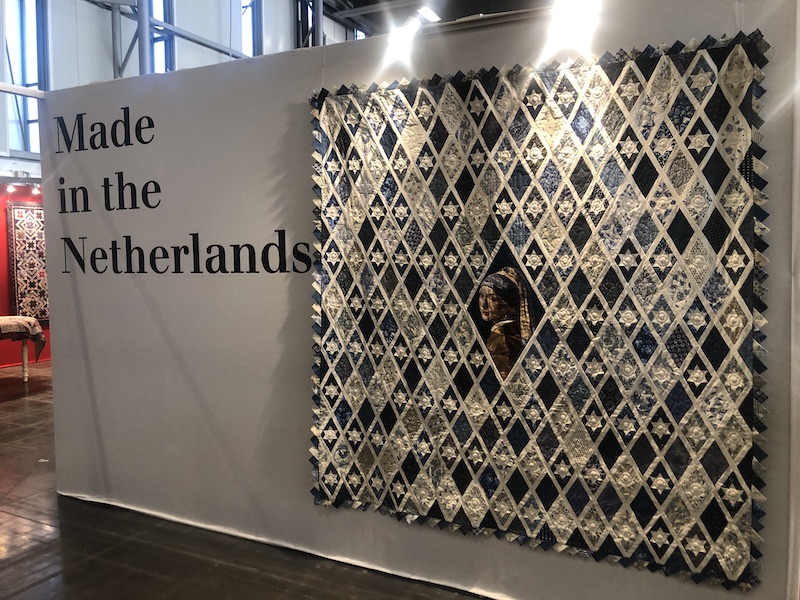 Made in the Netherlands was de expositie waar onze antieke lappendeken mocht hangen. Ook de antieke hexagonnen top van Hanneke en haar versie van het meisje met de parel maakten daar deel van uit. De verlichting was helaas niet optimaal om mooie foto’s te maken zoals jullie op onderstaande foto’s zien.