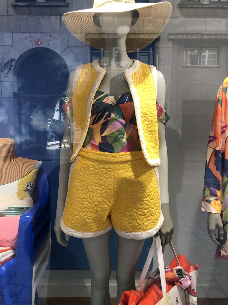 Nadat we maandag de quilts afgeleverd hadden konden we van het mooie Nantes genieten. Prachtig weer en een leuke studentenstad. Zeker de moeite waard om een en ander te bekijken. En natuurlijk vallen etalages met quilterige dingen ons op…. Leuk strandpakje toch?