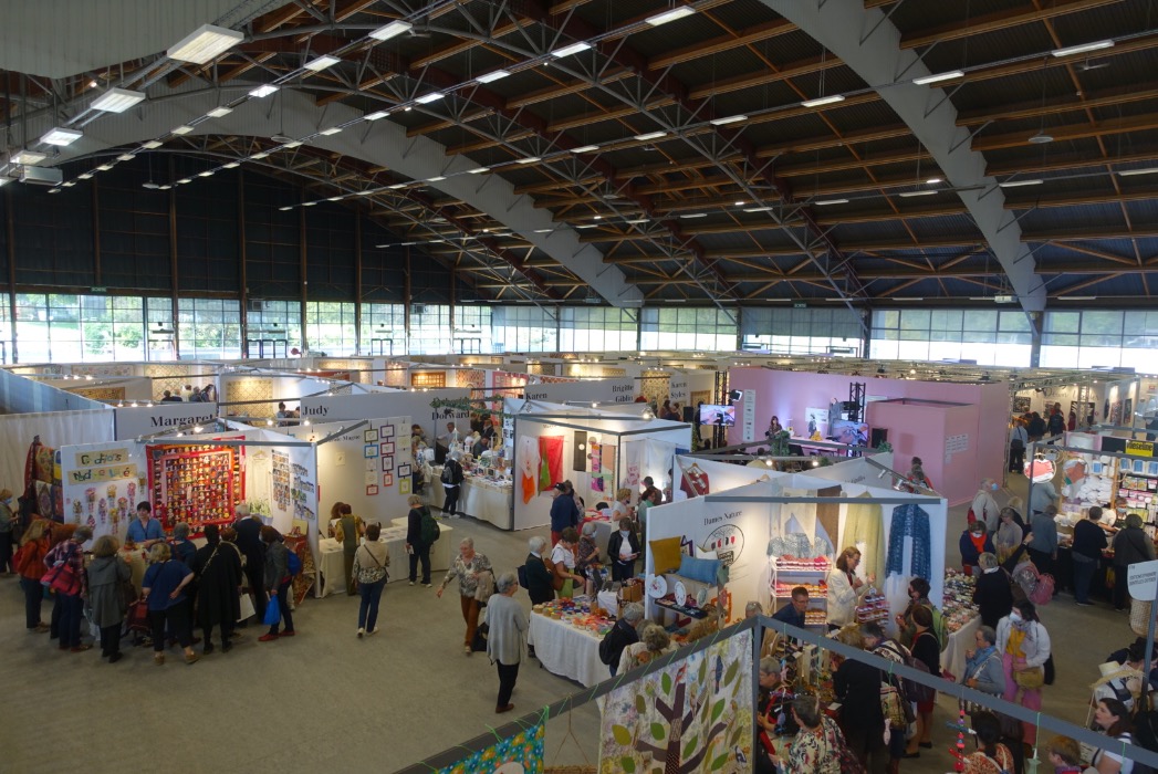 Dit jaar was Nederland eregast tijdens Pour l’amour du fil in Nantes. Dit is een jaarlijks terugkerende beurs georganiseerd door Quiltmania. Dit jaar vond de beurs voor de 14de keer plaats van woensdag 19 tot en met zaterdag 22 april. Daarom hadden Inge van Koningsveld en Carol Veillon al contact met elkaar gehad in Birmingham tijdens het Quiltfestival in het NEC. Carol wilde graag onze antieke quilt tentoon stellen. Maar hoe moest die daar komen????