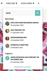 Gebruik je op de website de zoekterm “Kerst” in het vakje met het loepje rechtsboven aan de pagina, dan vind je talloze blogverhalen die iets met Kerst te maken hebben. Bekijk bijvoorbeeld eens een blogbericht over het maken van een kerstquilt, zoals die van Gerie, Petra, Marina, Marjolein of Ineke.