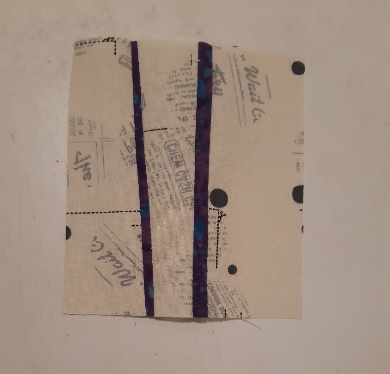 Dit is een dikte van strookje dat ik prettig vind naaien, maar het is misschien ook aardig met een dunner lijntje (foto linksonder) of juist een hele dikke lijn (foto rechtsonder).