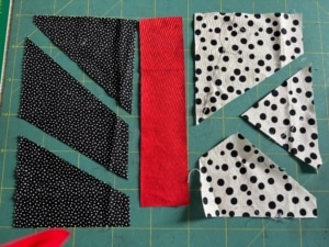 Op rasterquick de blokken getekend. Ik wist hoeveel blokken ik moest naaien dus de delen van de blokken op verloop gesneden.