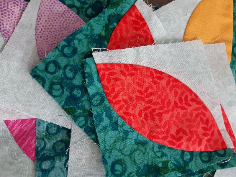De kleurige blokken vond ik echt een werkje voor de naaimachine, de snelle methode. Ik moest alleen goed opletten dat er wat variatie in de blokken zou zijn.