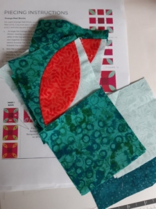 Aangezien ik tegenwoordig in de commissie Modern zit, besloot ik mee te doen met de Satsumaquilt van het Amerikaanse Modern Quilt Guild. Uiteraard wel in mijn eigen kleurkeuze. Ik heb nog nooit meegedaan met iets van het Modern Quilt Guild, dus dit is wel een goede gelegenheid. En ik moet zeggen, het valt helemaal niet tegen, het is erg leuk en er komt ruim voldoende informatie bij. Zelfs als je Engels niet zo goed is, kun je het met de tekeningen in het patroon en de video’s die je per mail ontvangt, prima volgen. Het patroon blijft sowieso langere tijd beschikbaar, dus als je graag die quilt zou willen maken, kun je gewoon bij hun site inloggen, als je tenminste lid bent van het Modern Quilt Guild. Via het quiltersgilde kun je voor een paar euro ook lid worden van het Modern Quilt Guild, hartstikke handig.