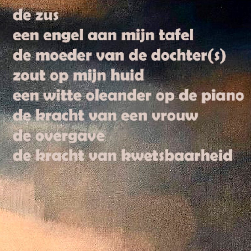 Dus ben ik met een stapel fijne boeken uit mijn kast aan de gang gegaan en inderdaad ontstond er als vanzelf een ‘gedicht’. Het slaat op de aanwezigheid van mijn, helaas veel te jong overleden zus J., in mijn leven tot nu. Hier wil ik wel mee gaan werken als uitgangspunt voor de quilt.