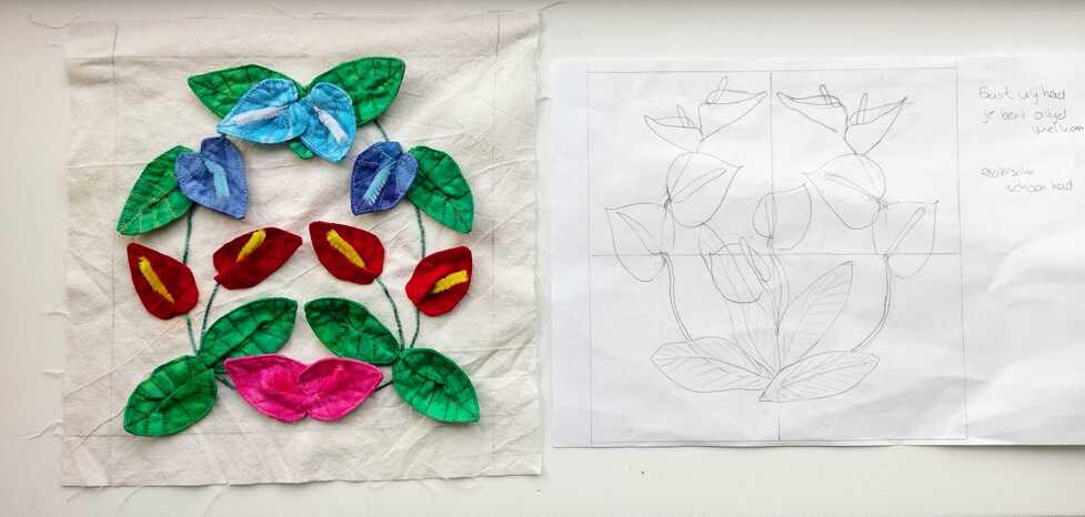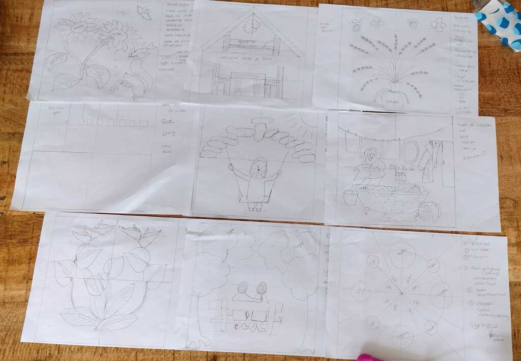 Vroeger schreven we elkaar brieven. Die uitwisseling van gedachten door schrijven kan nu per mail. Dat is een stap die je bij het gewone quilten en ontwerpen eigenlijk nooit zet. Alles beschrijven wat je wil doen en daar feedback op krijgen. Deze online uitwisseling van gedachten over een tekst koppel ik aan de vragen die ik heb geformuleerd om te komen tot een ontwerpproces.