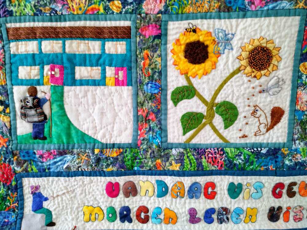 We hebben veel mensen gesproken en veel ideeën uitgewisseld. Zo’n ontmoeting levert altijd mooie en interessante gesprekken op. De mensen kwamen af op de quilts die er te zien waren. Bij iedere quilt hing de gekozen tekst en werd uitgelegd hoe de maakster aan het werk gegaan was.