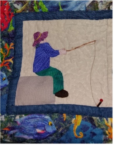 De sasings heb ik uiteindelijk met wat golfbewegingen gemaakt. Nu lijken de vissen in de sashings in het water te zwemmen.