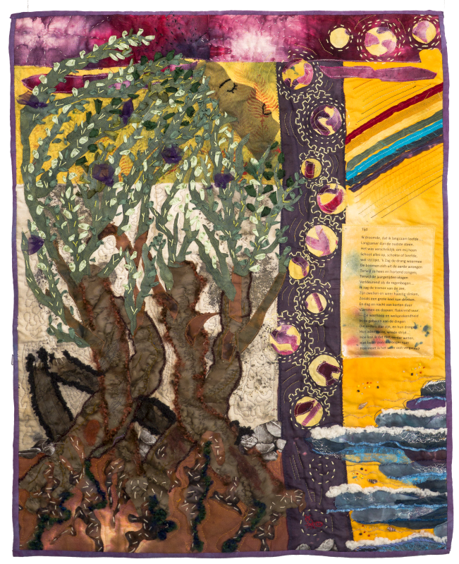 Online quiltcontact is echt belangrijk geworden tijdens de Coronapandemie. Online lezen, YouTubefilmpjes, Tutorials bekijken en online projecten volgen waren lang de enige mogelijkheden tot quiltcontact. Tijdens het schrijven van een inspiratieblog voor het Quiltersgilde vroeg ik (Joke) me af of ik vanuit een gedicht een quilt kon maken. Het was de Gedichtenweek, januari 2020, we zaten in lockdown.