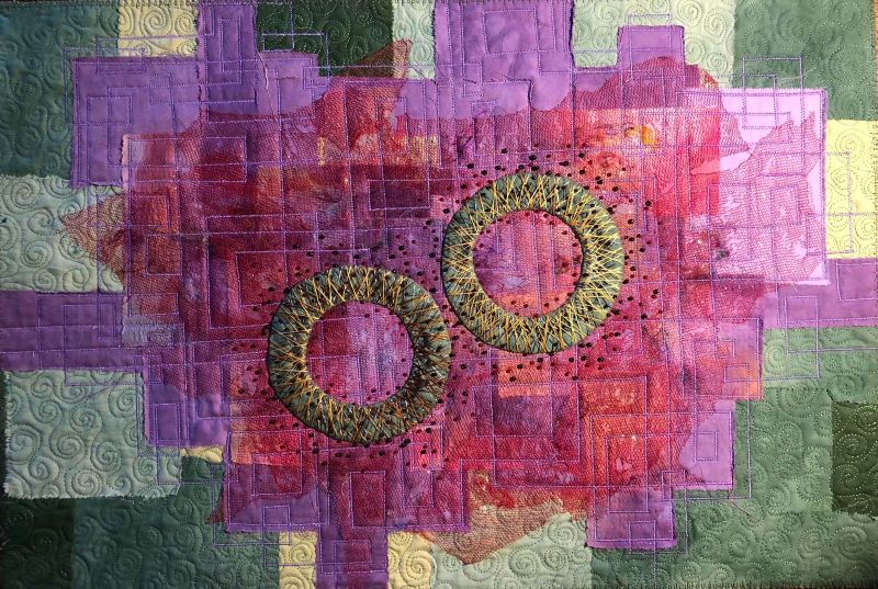 Dat bepaal je zelf. Het project loopt van tekst tot en met het ontwerp. Daarna start jouw werkproces. Het is natuurlijk fijn als er uiteindelijk een quilt uit de hoge hoed komt. Maar ook in het proefproject, was quilt 1 al voor het nagesprek klaar en de quilt 2 daarnaast is tijdens de Algemene Tentoonstelling afgemaakt en hing aan onze tafel. Je hebt het dus zelf in de hand. En wat zijn de regels dan? Verder zijn er geen regels over kleur, grootte of zo.