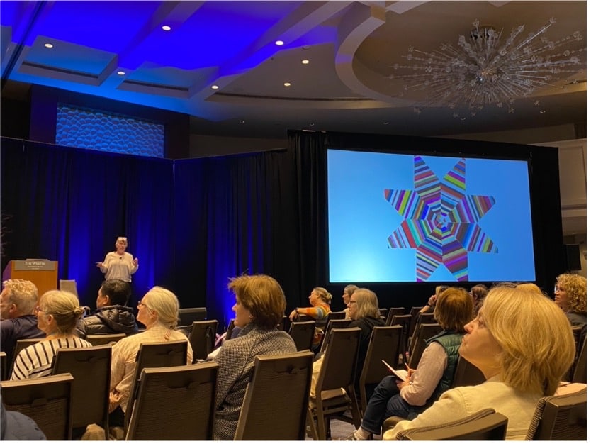 Twee jaar geleden heb ik tijdens Quiltcon in Atlanta een lezing over kleur en kleurwaarde van haar gevolgd. Dat was erg interessant en heel verhelderend. Ze kan goed uitleggen, weet je aandacht goed vast te houden en heeft nog humor ook. Voor het eerst begon ik het te begrijpen.
