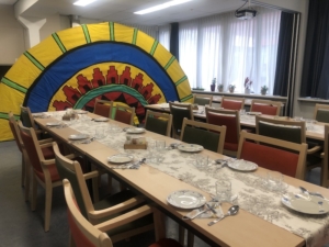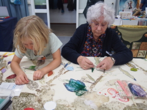 Ook de ’tree of connection’ kreeg veel aandacht. Gesprekken over en weer tussen onbekenden en bekenden ontstonden tijdens het borduren van blaadjes, bloemetjes en takjes.