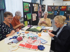 Wat we geleerd hebben van deze dagen is dat onze leden het erg waarderen dat we naar ze toe komen. De locale quiltbee’s kunnen zich presenteren en vinden weer nieuwe leden. En ook het onderlinge contact tussen de verschillende quiltbee’s levert nieuwe ideeën en waardevolle contacten op bleek in Waalre. Omdat het reizen naar de tentoonstellingen voor sommige leden niet meer mogelijk is, brengen we de tentoonstelling en gezelligheid op deze manier naar de leden toe. We kregen veel positieve reacties. Zo worden we zichtbaarder in de regio’s en dat is goed voor onze bekendheid als grootste textielvereniging in Nederland!