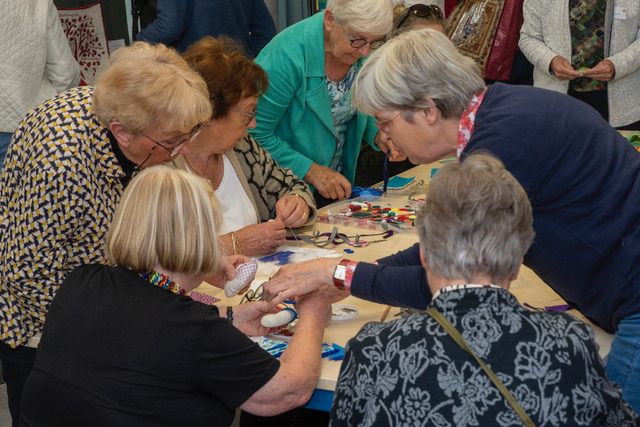 Wat we geleerd hebben van deze dagen is dat onze leden het erg waarderen dat we naar ze toe komen. De locale quiltbee’s kunnen zich presenteren en vinden weer nieuwe leden. En ook het onderlinge contact tussen de verschillende quiltbee’s levert nieuwe ideeën en waardevolle contacten op bleek in Waalre. Omdat het reizen naar de tentoonstellingen voor sommige leden niet meer mogelijk is, brengen we de tentoonstelling en gezelligheid op deze manier naar de leden toe. We kregen veel positieve reacties. Zo worden we zichtbaarder in de regio’s en dat is goed voor onze bekendheid als grootste textielvereniging in Nederland!