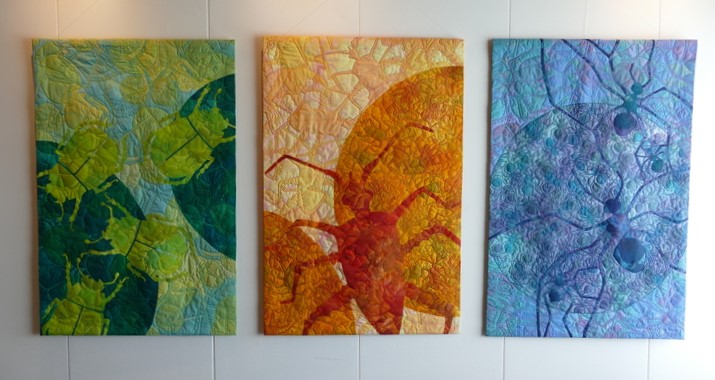 Even wat (art)quilt gerelateerde voorbeelden. Zo waren de eindwerkstukken van de studenten van de cursus “Vormgeving en ontwerpen’ bij textielinstituut Hawar te bewonderen.