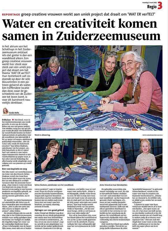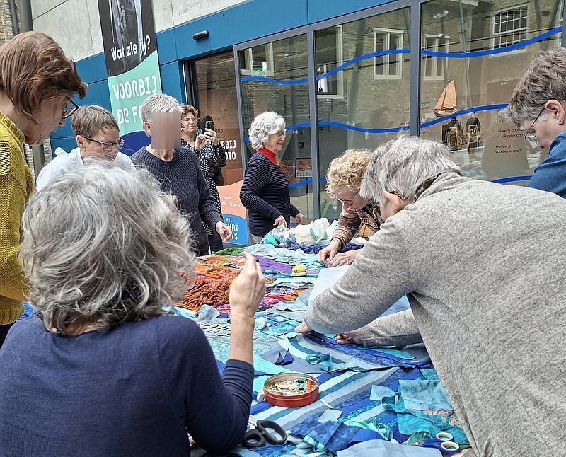 Eind februari konden we meewerken aan het communityproject WAT ER verTELT, voor bij het textielfestival dit jaar. Klik hier als dit allemaal nieuw is voor je: Textielfestival 2026 | Amersfoort. Scroll even naar beneden en je ziet het Communityproject. Daar zie je ook de foto van het ontwerp van twee hele grote banners waaraan we meewerkten. Dit project reist door Nederland om daarna in mei te hangen in de St. Joriskerk in Amersfoort. Na Enkhuizen gaat het nog naar een aantal plaatsen, kijk maar of het nog in jouw buurt komt. Het is door deze werkwijze echt een community project, er is straks door heel veel mensen in Nederland aan meegewerkt.