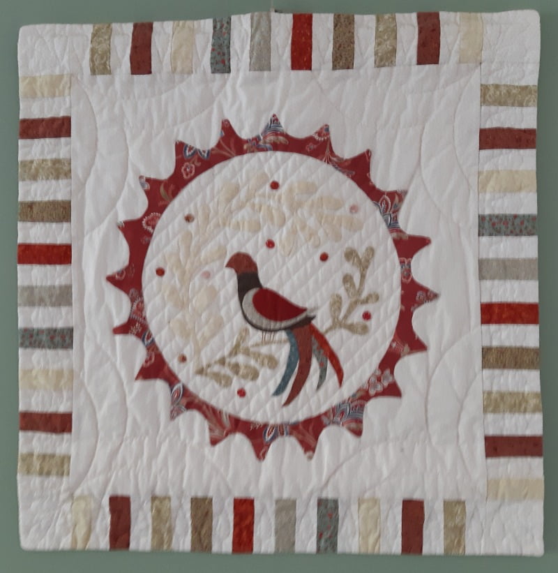 Maar nu kan ze quilten wanneer ze wil en wanneer ze er zin in heeft, ’s ochtends in de zon en in de tuin en ’s avonds tijdens een voetbalwedstrijd….